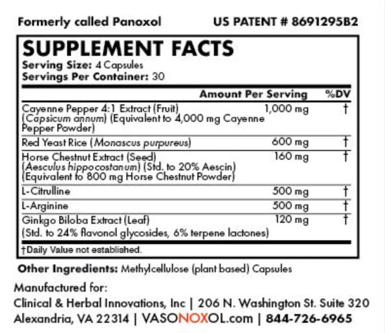 We continually seek the highest-quality domestic and internationally sourced ingredients for our products. Vasonoxol is 100% U.S.-manufactured for Clinical and